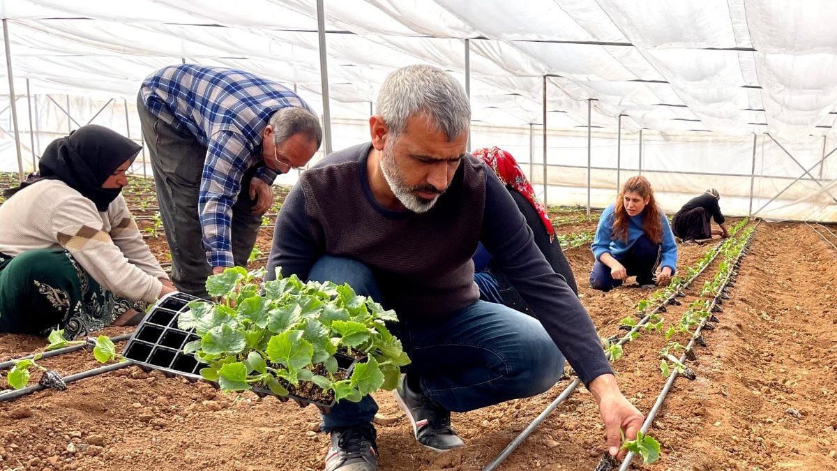 Üretici Veysel Akkuş ise "Burada salatalık ekiyoruz. Bir dönümlük serada ekimi yapıyoruz. Kazancı yüksek, verimi yüksek" ifadelerini kullandı.