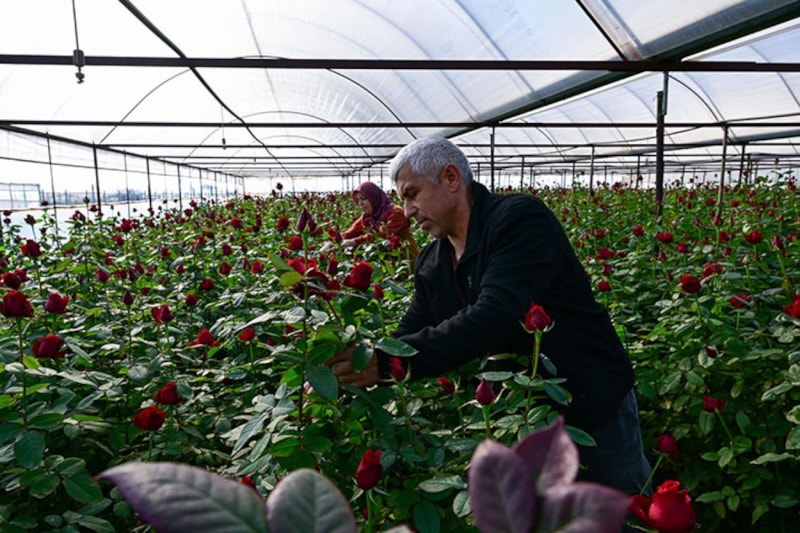 Türkiye'nin kesme çiçek üretim merkezlerinden İzmir'in Menderes ilçesinde, 14 Şubat Sevgililer Günü öncesi hasat yoğunluğu yaşanıyor.