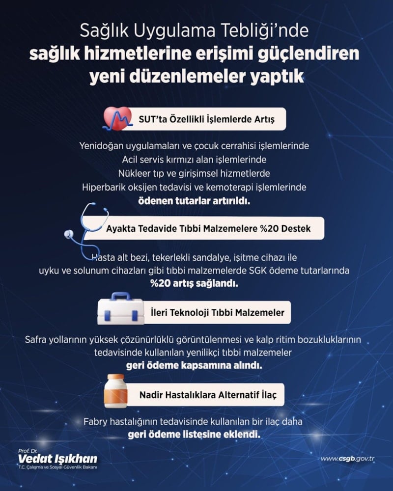 Vedat Işıkhan'ın Sağlık Uygulama Tebliği’nde, sağlık hizmetlerine erişimi kolaylaştıracak yeni düzenlemeler ilişkin paylaşımı şöyle: