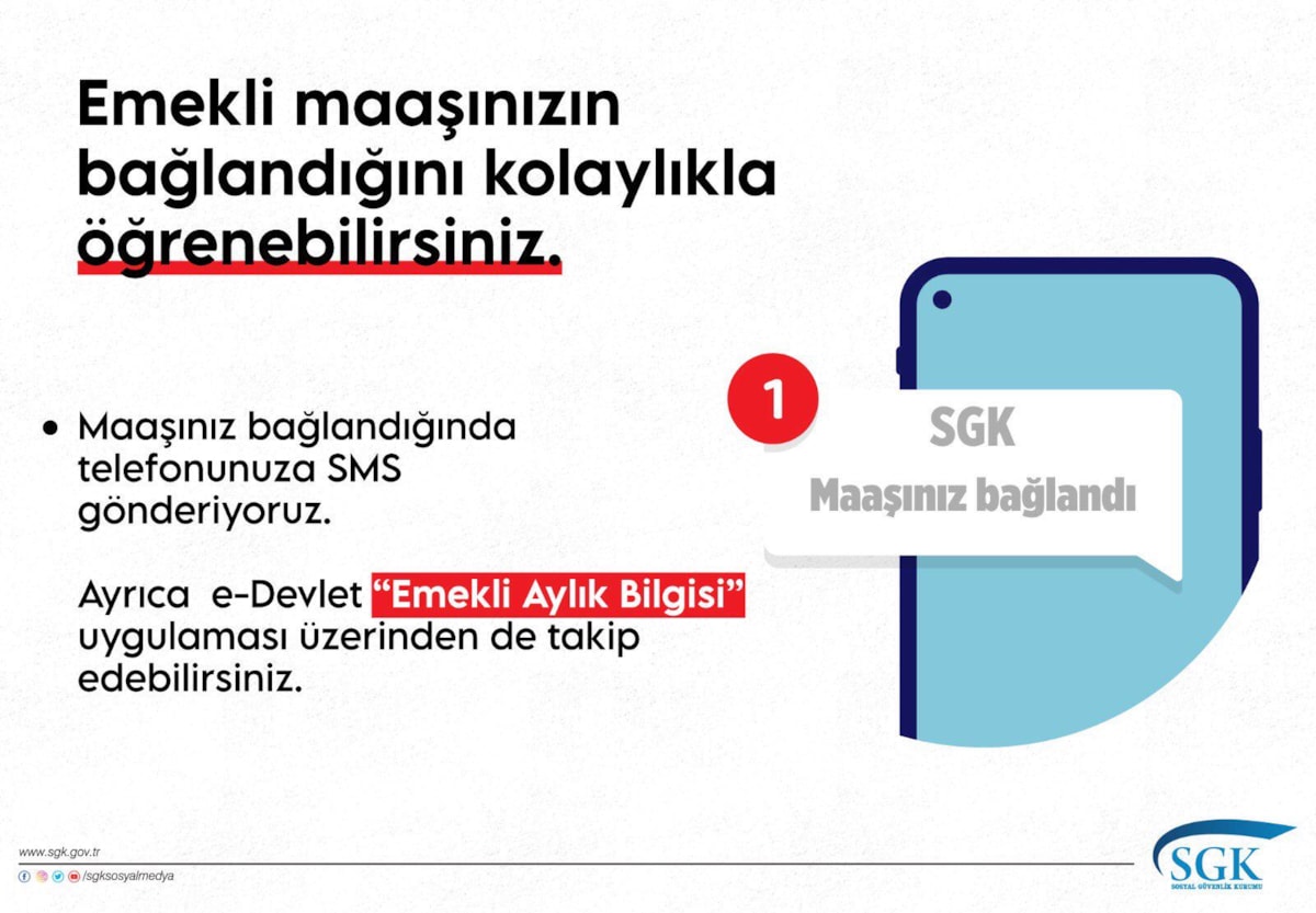 Bu aşamada SGK bir paylaşım yaparak, emekli olacakların maaşlarını kolaylıkla öğrenebileceklerini belirterek seçenekleri sıralandırdı. Bunlardan birisi maaş bağlandığında SMS gönderileceği bilgisi oldu.