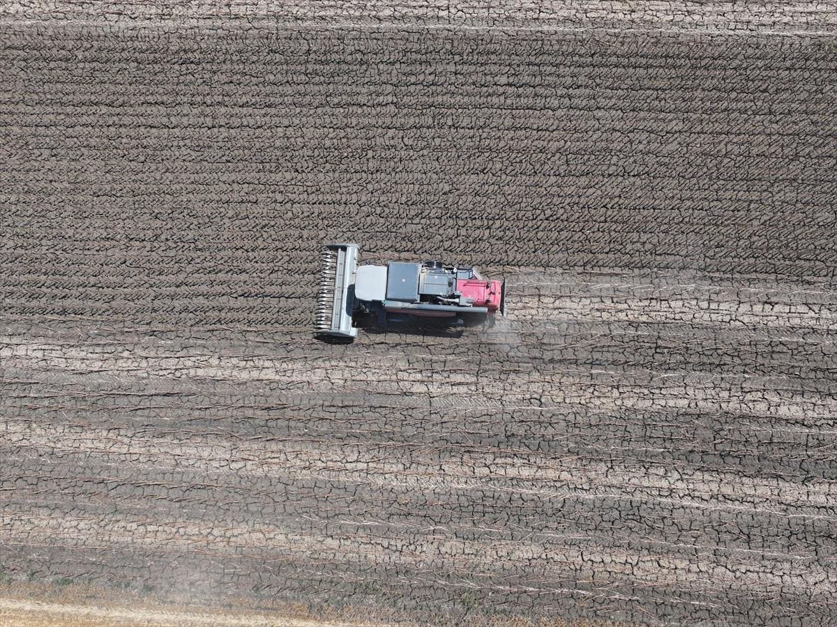 Bu yıl aşırı sıcaklar nedeniyle erken kuruyan ayçiçekleri biçerdöverlerle hasat ediliyor.