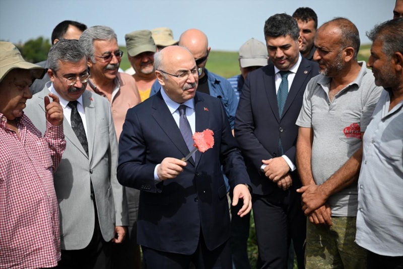 Karataş ilçesi Bahçe Mahallesi'nde Engin Koca'ya ait tarlada gerçekleştirilen hasada Vali Yavuz Selim Köşger de katıldı.