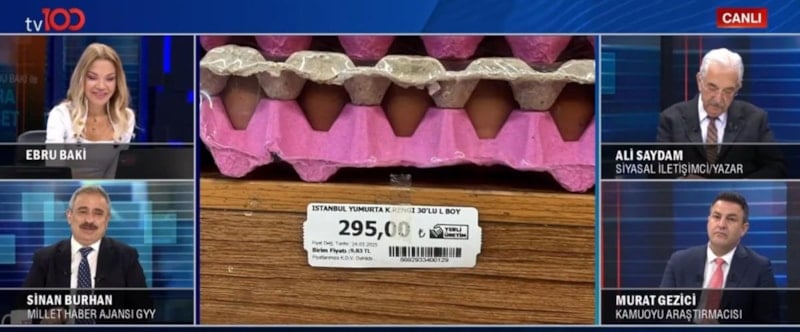 Sebze fiyatlarının yazın da yüksek olduğundan yakınan tv100 sunucusu Ebru Baki'ye gazeteci Sinan Burhan, "Size bizim tarladan ucuza ürün vereceğim" dedi.