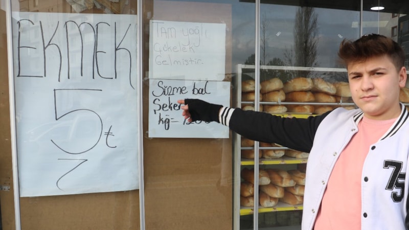 Sivas'taki bir büfenin sahibi olan Yağız Çakmak, somun ekmeğinin fiyatını vatandaşa hizmet olsun diye 5 lira yaptı.