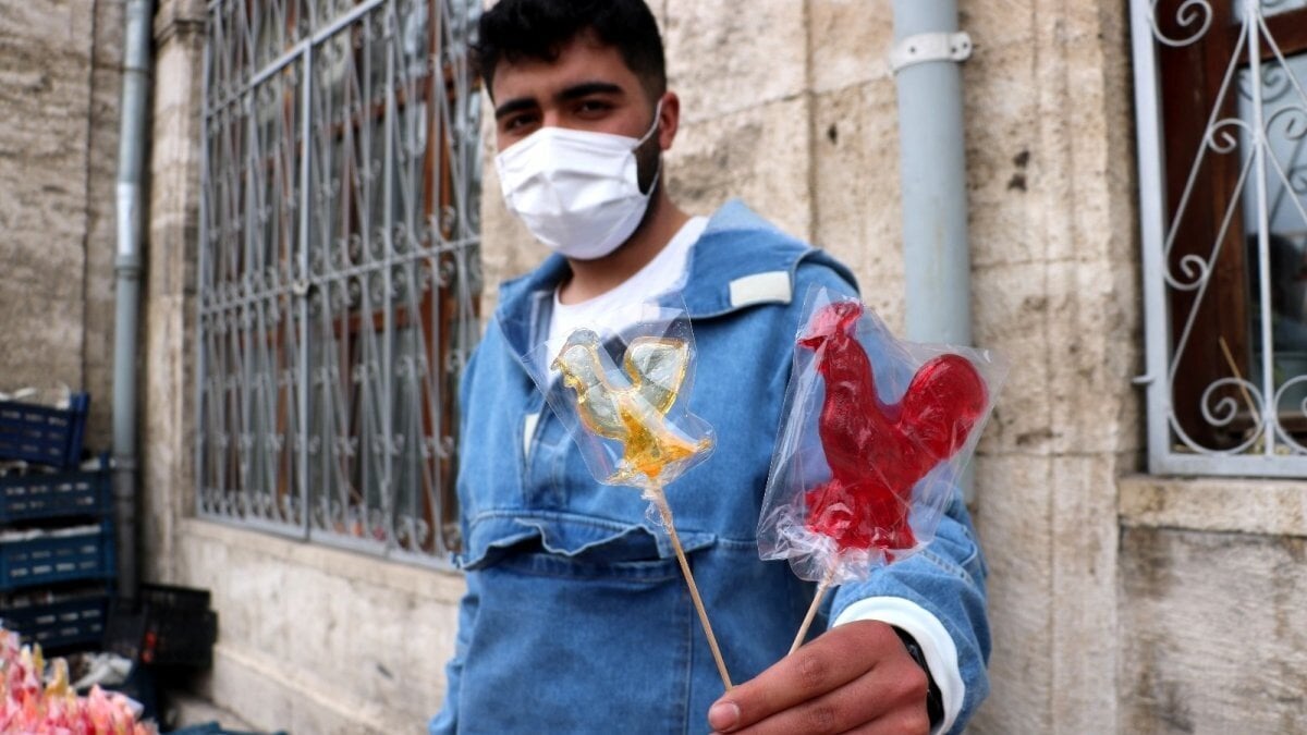 Sadece Ramazan ayında satılan bu şekeri çocuklar kadar yetişkinler de tercih ediyor. Koronavirüs nedeniyle alınan tedbirler kapsamında dışarı çıkamayan çocuklarını sevindirmek isteyen aileler horoz şekerine rağbet gösteriyor.