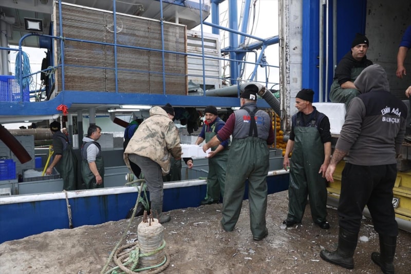 Havaların soğuması ile hamsinin yoğunlaştığı bölgede denize açılan balıkçılar, avladıkları kasalar dolusu balıkla kıyıya dönüyor.