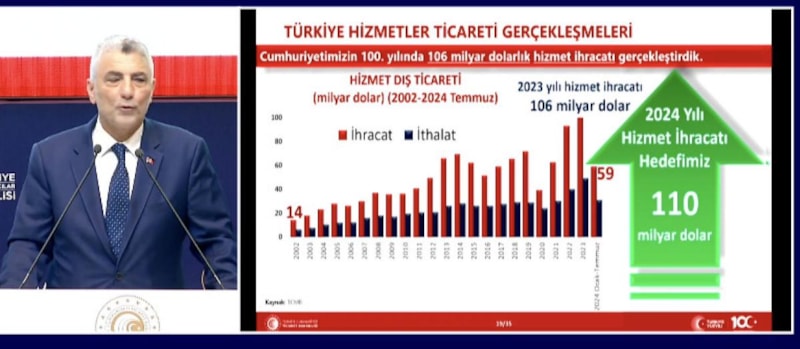 2024'te hizmet ihracatı hedefi ise 110 milyar dolar.
