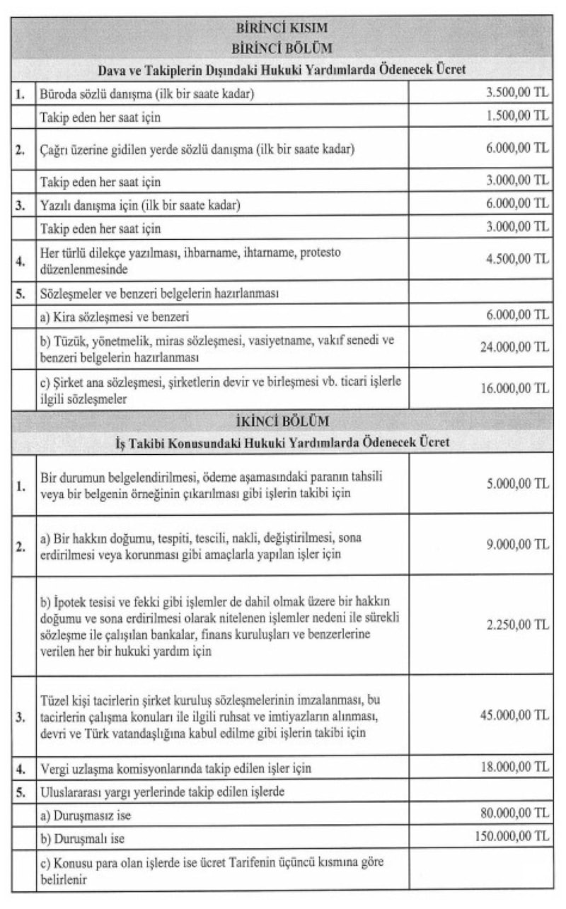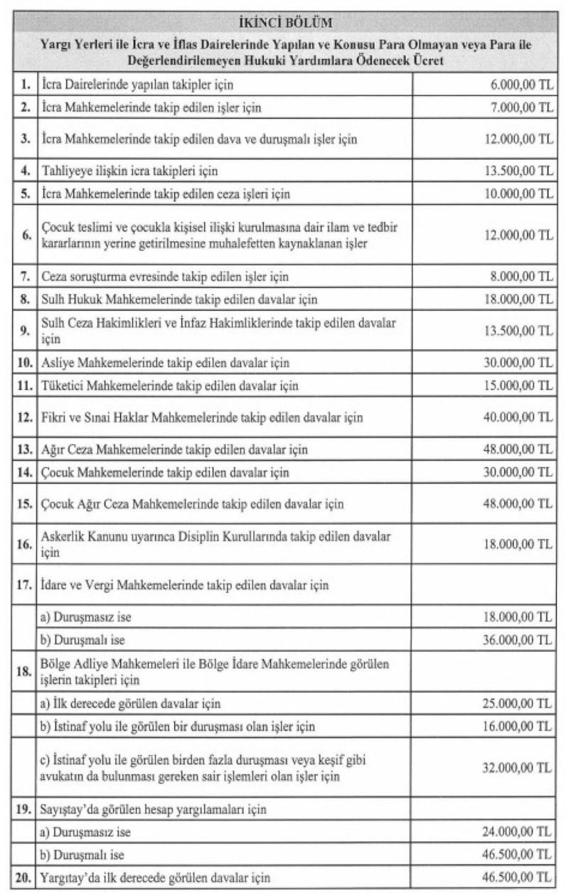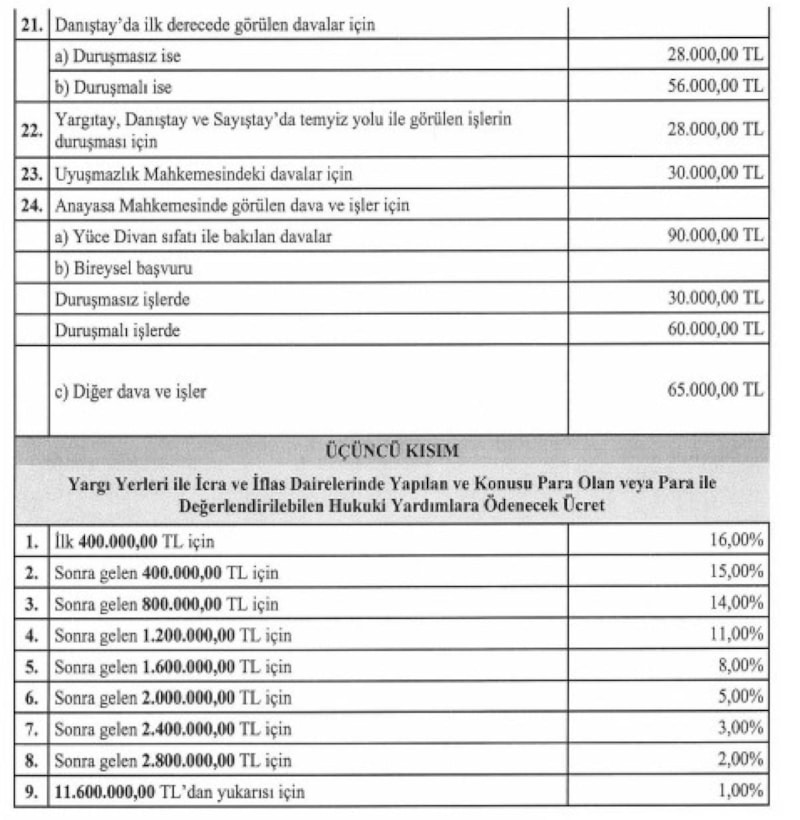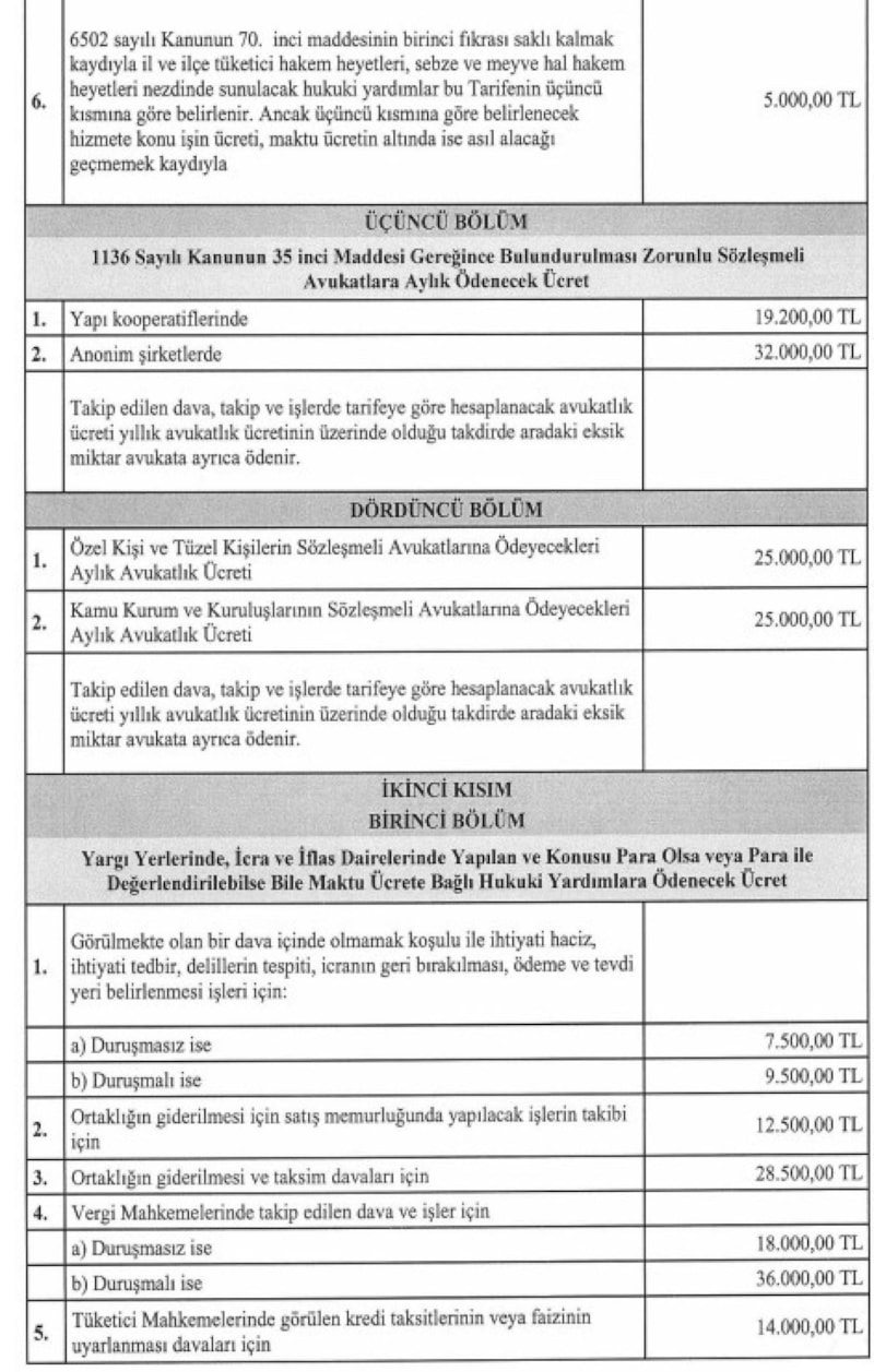 Özel kişi ve tüzel kişilerin sözleşmeli avukatlarına ödeyecekleri aylık avukatlık ücreti ayrı bir bent olarak düzenlenerek 25.000 TL olarak belirlendi.
