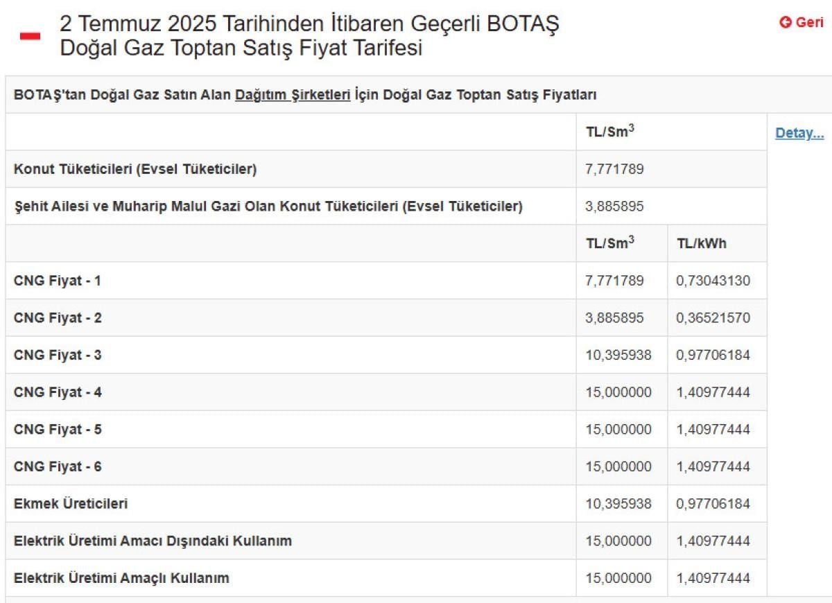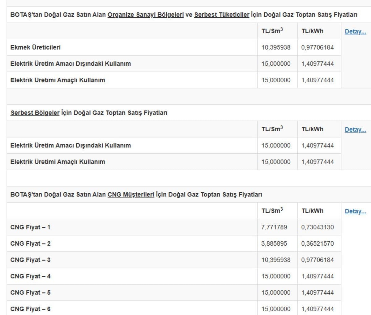 Boru Hatları İle Petrol Taşıma AŞ'nin (BOTAŞ) internet sitesinde ilan ettiği doğalgaz toptan satış fiyatları nezdinde doğalgaz fiyatlarında da artış yaşandı.