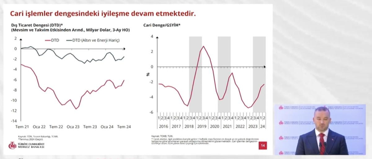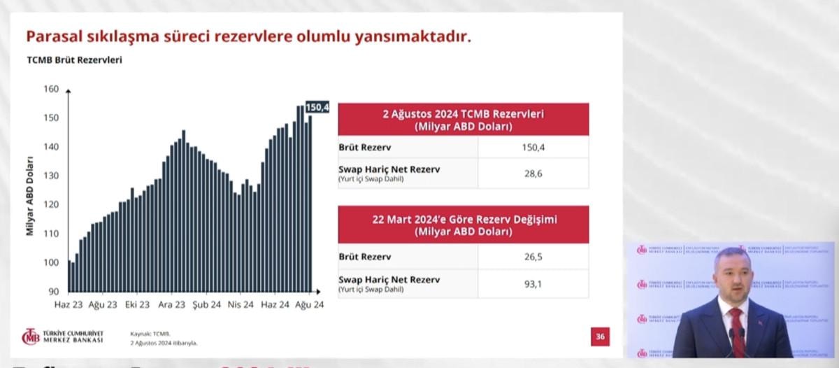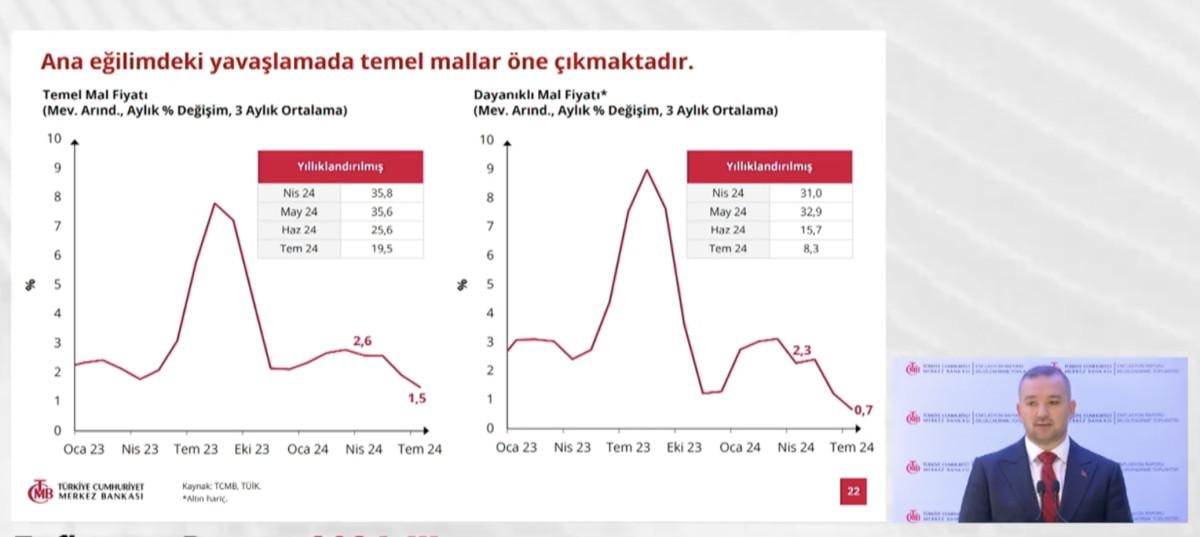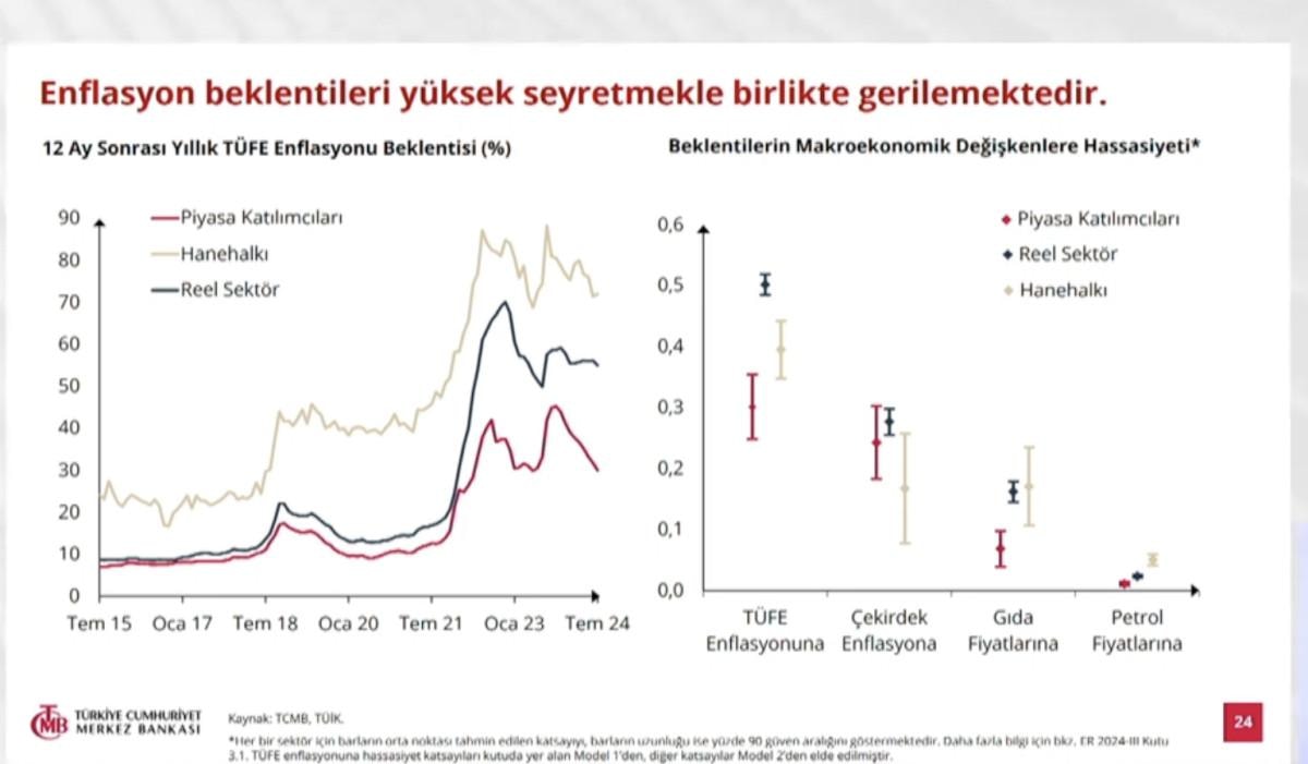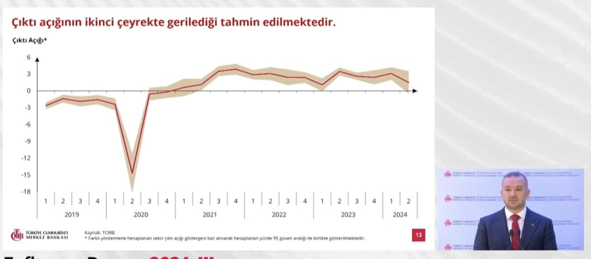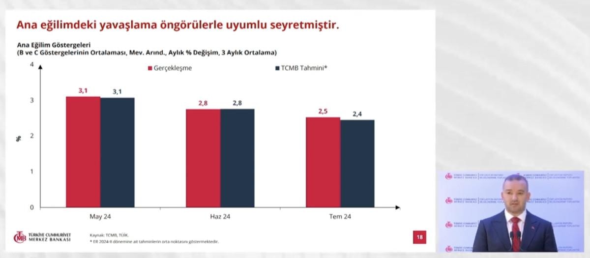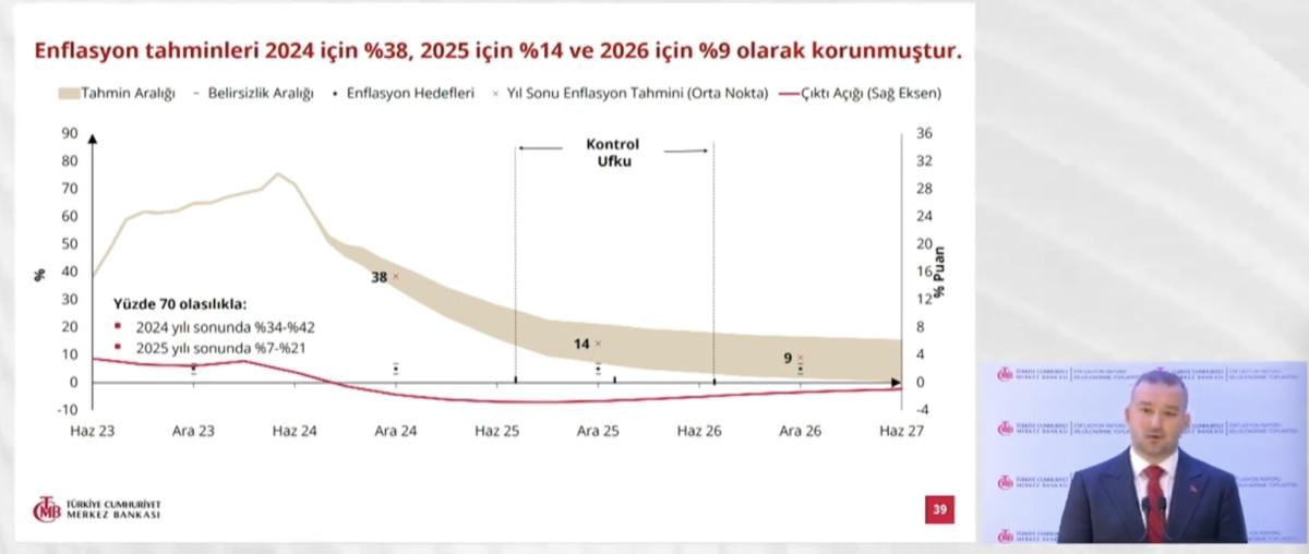 Yılın üçüncü raporunda 2024 yıl sonu enflasyon tahmini yüzde 38, 2025 yıl sonu enflasyon tahmini yüzde yüzde 14 ve ve 2026 yıl sonu enflasyon tahmini yüzde 9 seviyesinde sabit kaldı.
