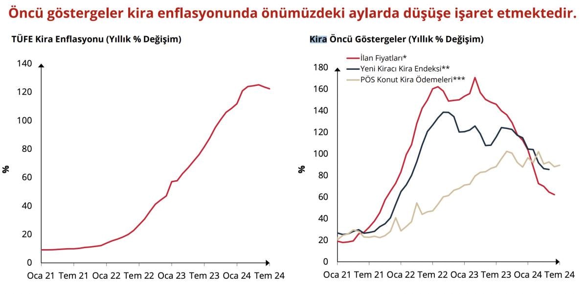 -Öncü göstergeler kira enflasyonunda önümüzdeki aylarda düşüşe işaret etmektedir. Uzun süredir azalış eğitiminde. Bu durum önümüzdeki dönemde kira enflasyonunu azalacağını gösteriyor.