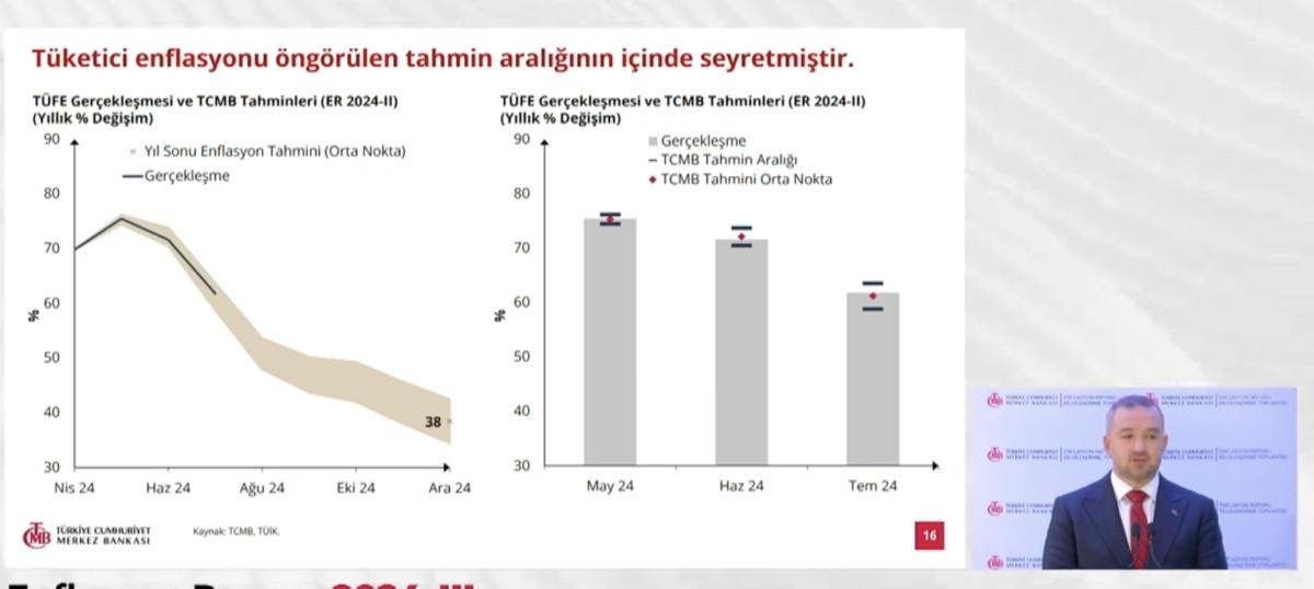 Yılın ikinci raporunda 2024 yıl sonu enflasyon tahmini yüzde 38, 2025 yıl sonu enflasyon tahmini yüzde yüzde 14 ve ve 2026 yıl sonu enflasyon tahmini yüzde 9 seviyesindeydi. Orta vadede ise enflasyonun yüzde 5’te istikrar kazanmasını hedeflenmişti.