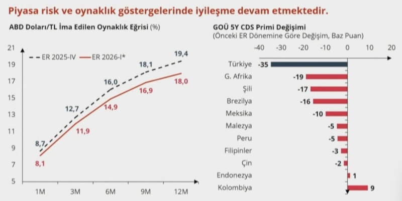 Piyasalardaki risk azaldı. 2025 yılında enflasyon, ara hedefin üzerinde gerçekleşti. Kuraklık ve don hadiseleri gıda fiyatlarını etkiledi. Yönetilen ve yönlendirilen fiyatlar, varsayımların üzerinde geldi.
