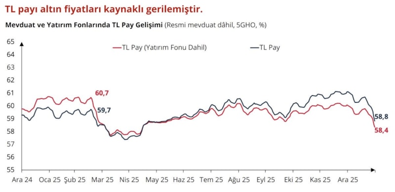 Kredi büyümesinde 2024 yılından itibaren TL lehine görünüm devam etmektedir. Hem ticari krediler hem de bireysel krediler artışa destek vermiştir. Kredi büyümesini dezenflasyon süreciyle dengeli tutmak için sınırlarda değişikliğe gittik. Mevduatlar tarihsel seviyelere yakındır. Altın mevduatı arttığında TL mevduatı azalmaktadır. YP mevduatta görülen artış, ağırlıklı olarak altın fiyatı etkisinden kaynaklanmaktadır.