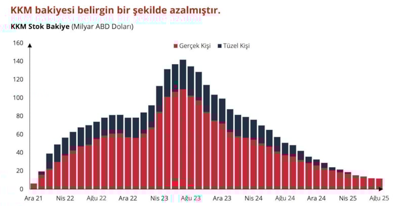 Ticari kredi büyümesi, istisna krediler hariç bakıldığında aylık büyüme sınırları ve kredi talebiyle uyumlu bir seyir izliyor. KKM bakiyesi belirgin bir şekilde azaldı. 12 milyar düzeyinde. Bu yıl sonlandıracağız.