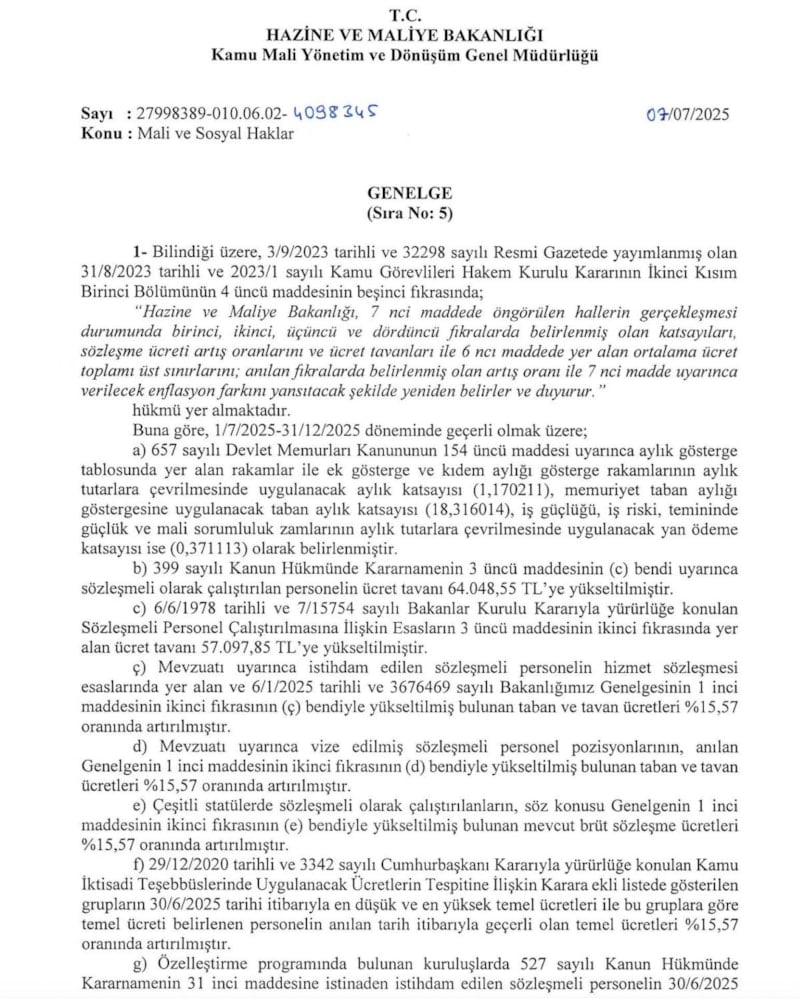 TÜİK'in haziran ayı enflasyonunu açıklamasıyla birlikte netleşen memur maş zam oranı sözleşmeli personel için de geçerli.