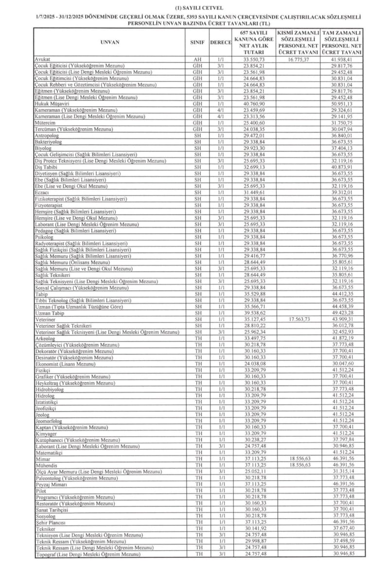 SÖZLEŞMELİ PERSONEL TAVAN ÜCRETİ: 65 BİN 48,5 LİRA