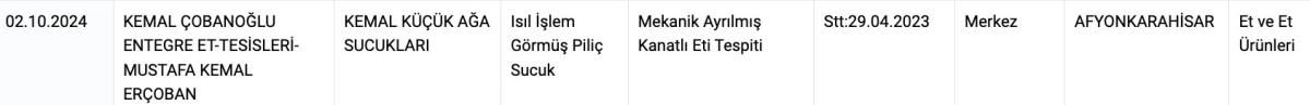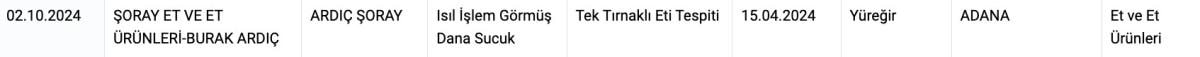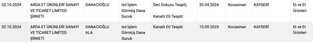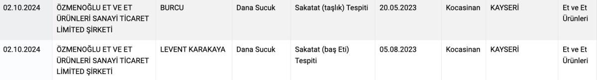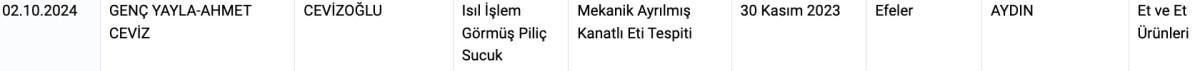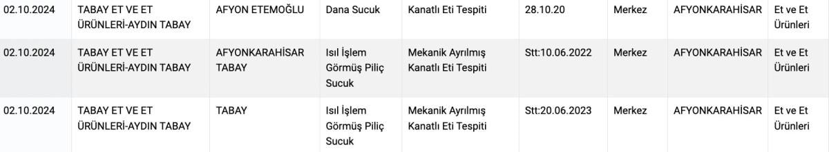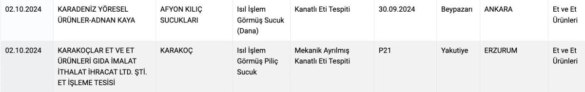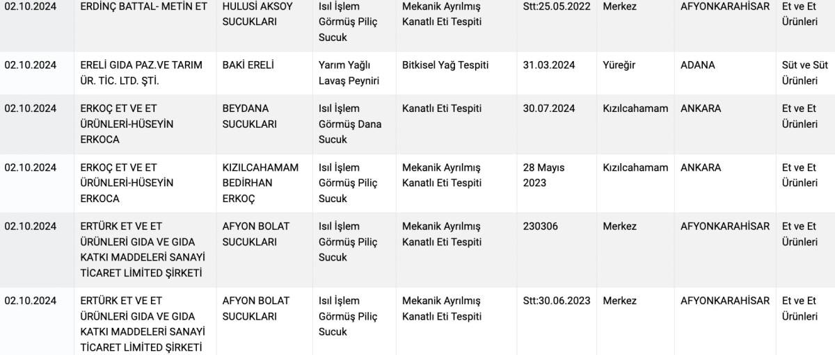 Bu listelerde at eti katılan lahmacun harcı, eşek eti karıştırılan Adana kebap, domuz eti karıştırılan tas kebabı, döner ve köfteye rastlandı.