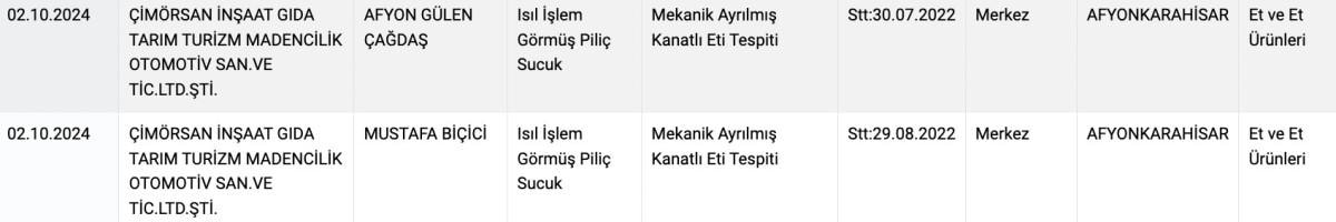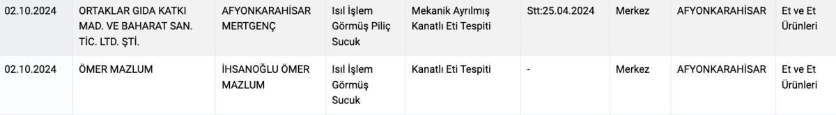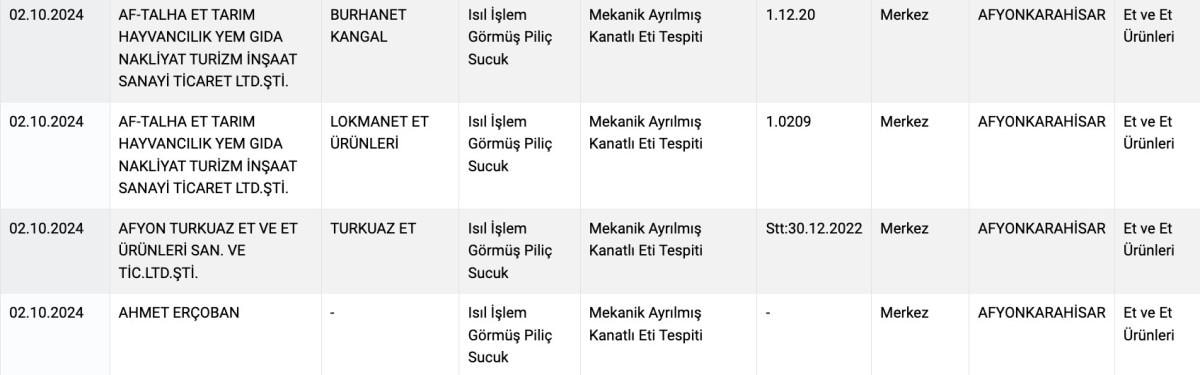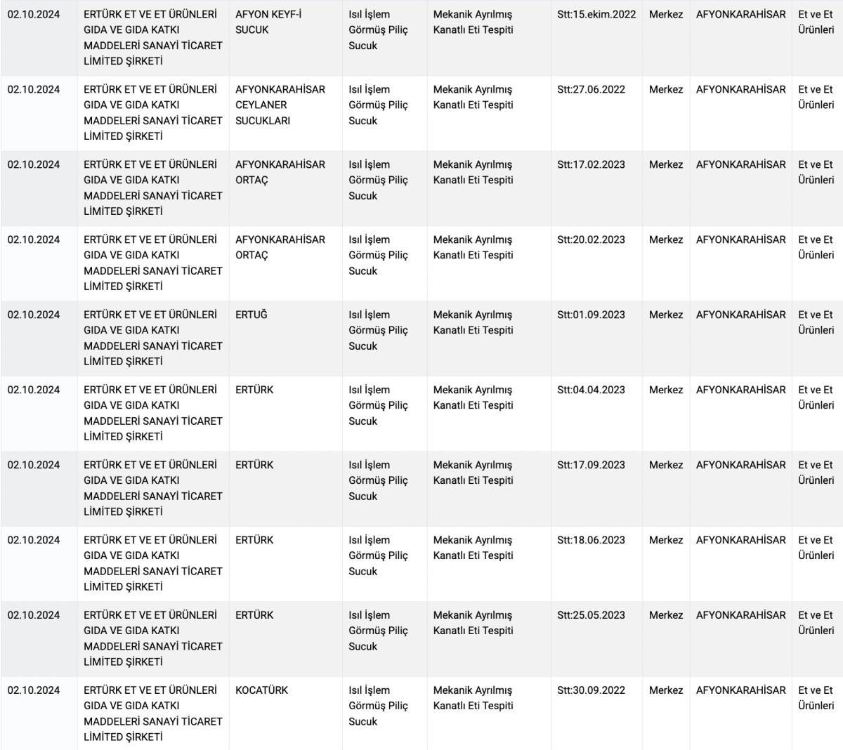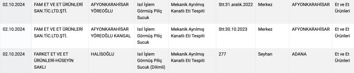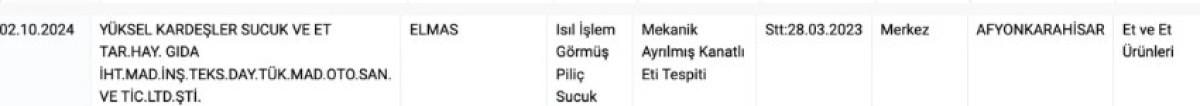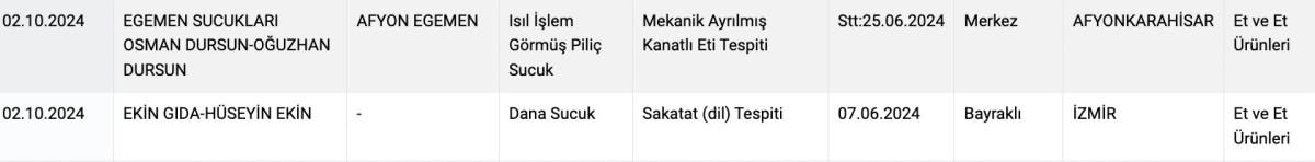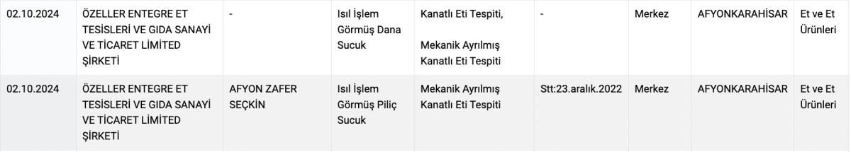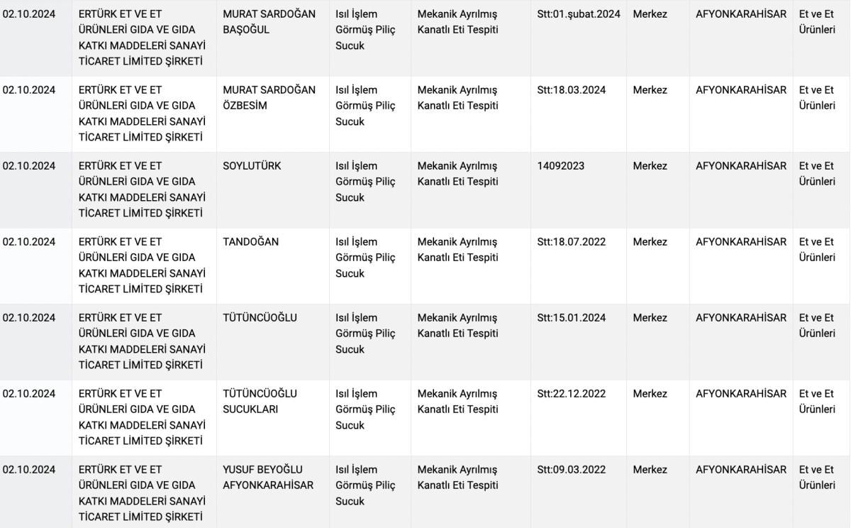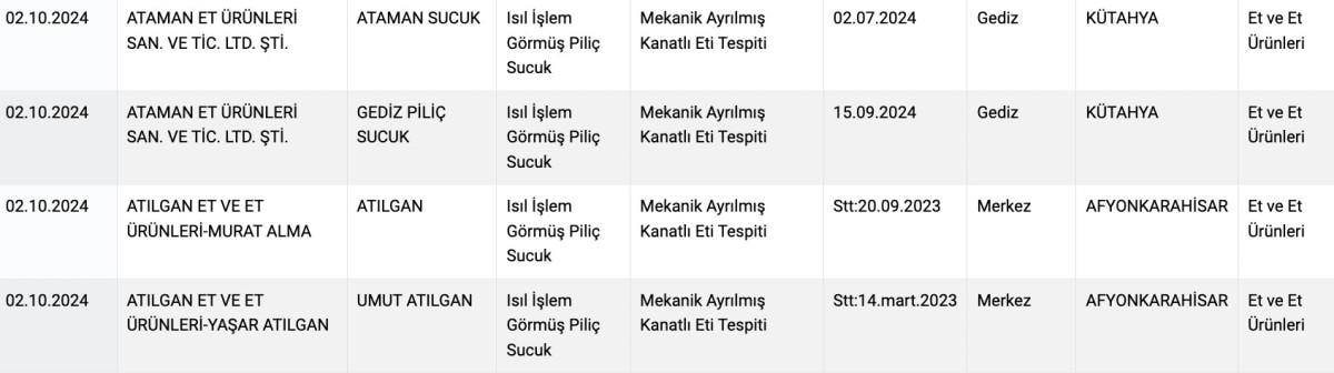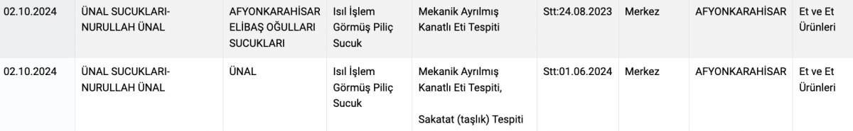 Sucukta taklit ve tağşiş yapan, sağlığa zarar veren ve Sakarya, Adana, Afyonkarahisar, Konya, Ankara, Kayseri, Erzurum, Mersin, İstanbul, İzmir, Aydın, Aksaray, Kütahya'da bulunan bu firmalar şöyle: