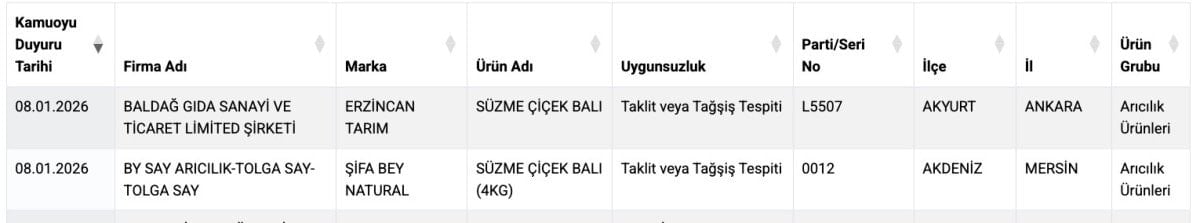Denetimlerde alınan numunelerin analizi neticesinde sağlığı tehlikeye düşürecek 121 gıda ürünü tespit edilmiş, 1.208 gıda ürününde de taklit veya tağşiş yapıldığı saptanmıştır. Bakanlığımızın şeffaflık ilkesi gereği, söz konusu ürünler güvenilir gıda internet sayfamızdaki 'Gıda Kamuoyu Duyurusu' bölümünden kamuoyuna duyurulmuştur. Çalışmalarımız 2026 yılında da aynı kararlılıkla devam edecektir.