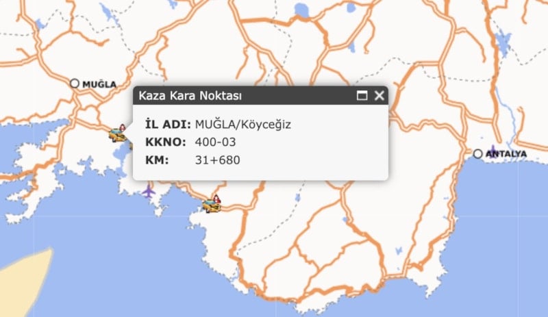 Muğla’nın Fethiye ilçesinde 400-05 kodlu 1,7. kilometre, Balıkesir’in Edremit ve Gönen ilçelerinde 550-06 ve 10-78 kodlu 29,82 ve 2,24. kilometre, Bursa’nın Mustafakemalpaşa ilçesinde 16-57 kodlu 3,15. kilometre kara noktalar olarak öne çıkıyor.