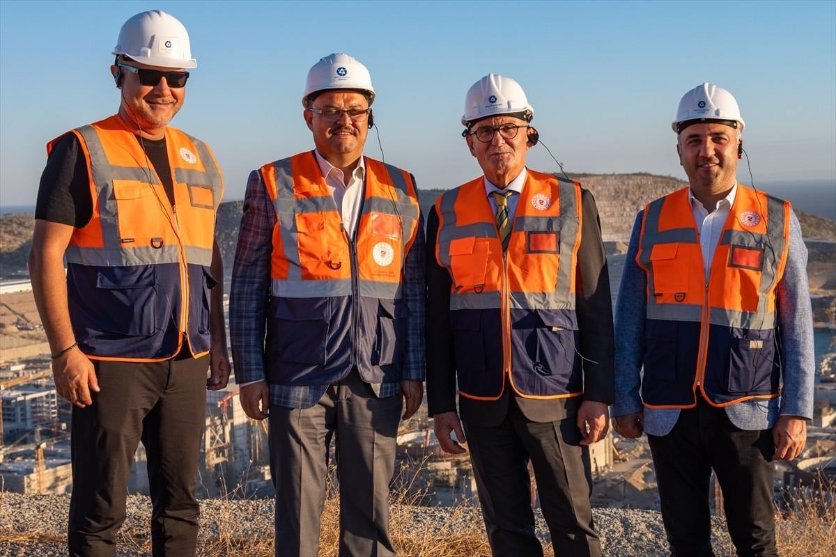 İş güvenliği brifinginin ardından inşa halindeki santralin güç ünitelerinin panoramasını sunan sahanın en yüksek noktasını ziyaret eden heyet, Akkuyu NGS'nin 2'nci ve 4'üncü üniteleri için getirilen türbin ve reaktör bileşenleri başta olmak üzere, büyük boyutlu ekipmanların depolandığı alanı görme fırsatı buldu.