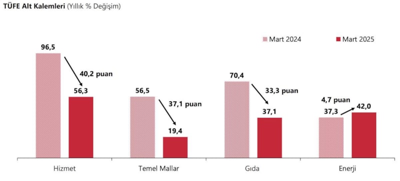Geçmişe endeksleme eğilimi güçlü kalemler, hizmet enflasyonunu yukarı çekmektedir. Mal enflasyonundan sonra hizmet enflasyonundaki düşüş de belirginleşmektedir. Enflasyonun ana eğiliminde ilk çeyreğe özgü bir yükseliş gözlenmiştir.