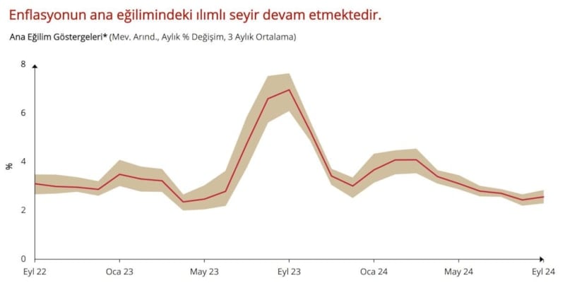 Daha önce de vurguladığımız gibi, bu süreçte iki ana koşul gözetiyoruz. Birincisi, aylık enflasyonun ana eğiliminin, belirgin ve kalıcı bir düşüş göstermesi. İkincisi ise, enflasyon beklentilerinin öngörülen tahmin aralığına yakınsaması.