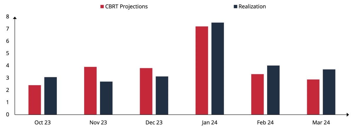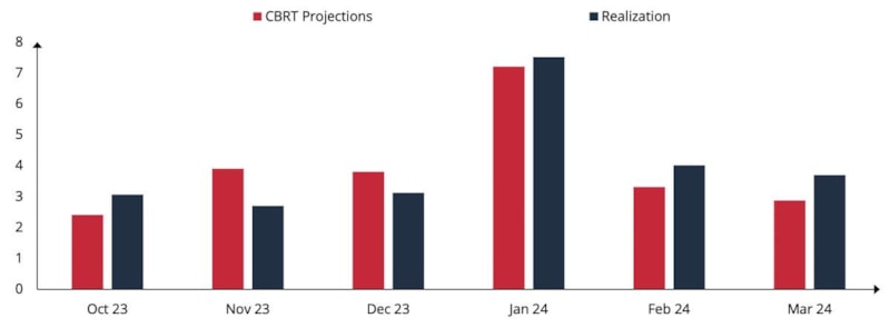 -Enflasyonun ana eğilimi ilk çeyrekte beklenenin üzerinde gerçekleşti.