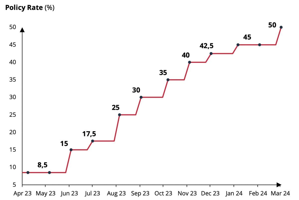 O zamandan bu yana politika faizini yüzde 50'ye çıkardıklarını belirten Karahan, bunun talepte bir miktar normalleşmeyi sağladığını söyledi.