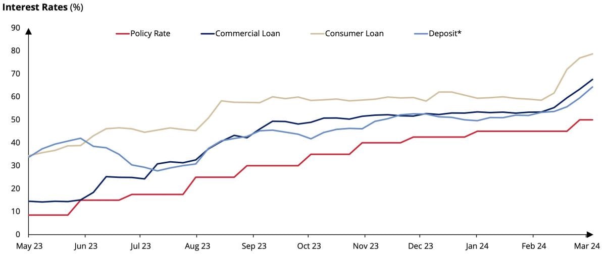 -Politika faiz artırımlarının ardından finansal koşullar sıkılaştı.
