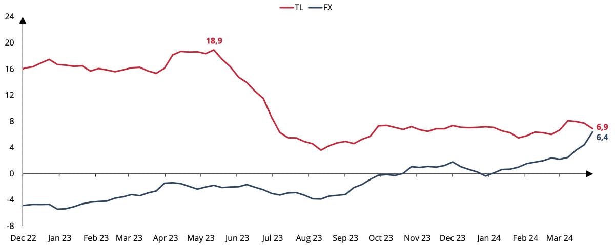 -Türk Lirası mevduatların payı arttı ancak kazanımların bir kısmı tersine döndü.