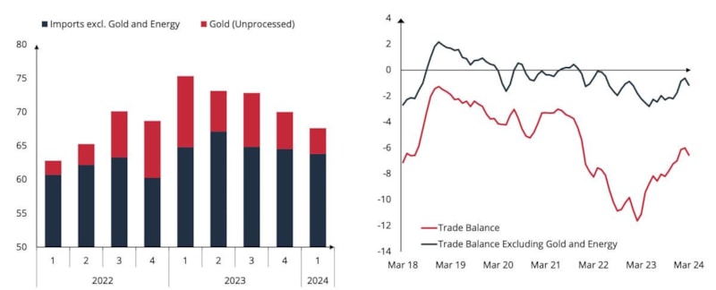 -İthalatın azalması ticaret dengesinde iyileşmeye yol açtı.