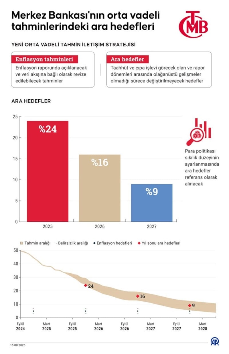 Banka 2026 ve 2027 yılları için ise enflasyon ara hedeflerini sırasıyla yüzde 16 ve yüzde 9 olarak belirledi.