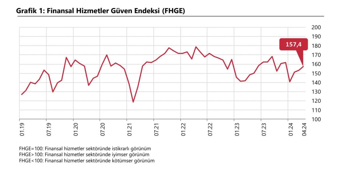 Türkiye Cumhuriyet Merkez Bankası (TCMB), nisan ayına ilişkin finansal hizmetler istatistikleri ve finansal hizmetler güven endeksini açıkladı.