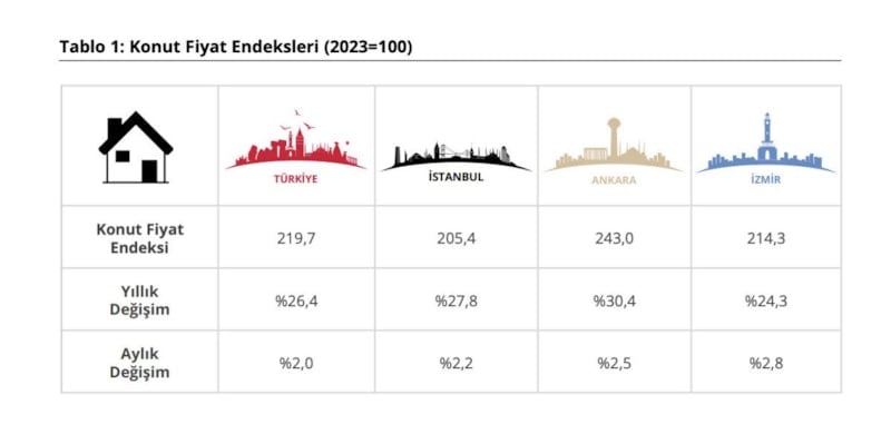 KONUT FİYAT ENDEKSİ MART 2026’DA YÜKSELDİ
