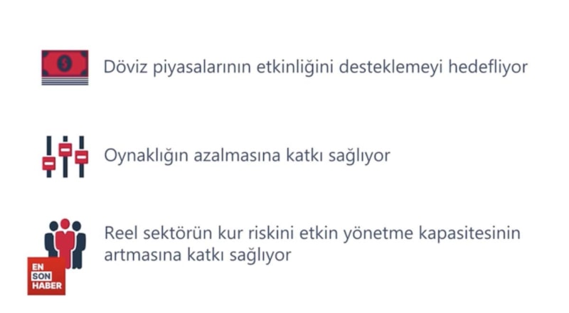 Bununla birlikte videoda, Merkez Bankasının, NDF'ler yoluyla kurlarda gözlenen oynaklıkları azaltarak döviz piyasalarının etkinliğini desteklemeyi hedeflediği, bu sayede reel sektörün kur riskini etkin yönetme kapasitesinin artmasına katkı sağlamayı amaçladığı kaydedildi.