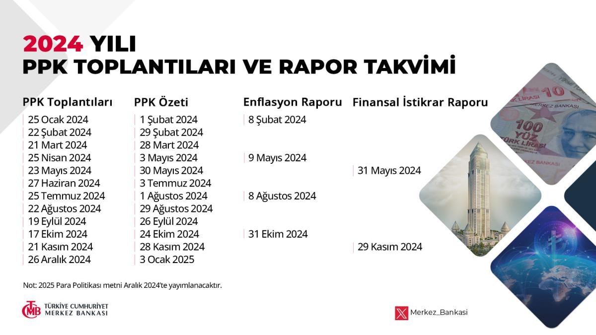 Bir hafta vadeli repo ihale faiz oranı, TCMB’nin temel politika aracı olmayı sürdürecektir. Dezenflasyonun en kısa sürede tesisi, enflasyon beklentilerinin çıpalanması ve fiyatlama davranışlarındaki bozulmanın kontrol altına alınması için 2023 yılı ikinci yarısında parasal sıkılaştırma süreci başlatılmıştır. PPK, önceden açıklanan bir takvim çerçevesinde 2024 yılında 12 toplantı yapacaktır.