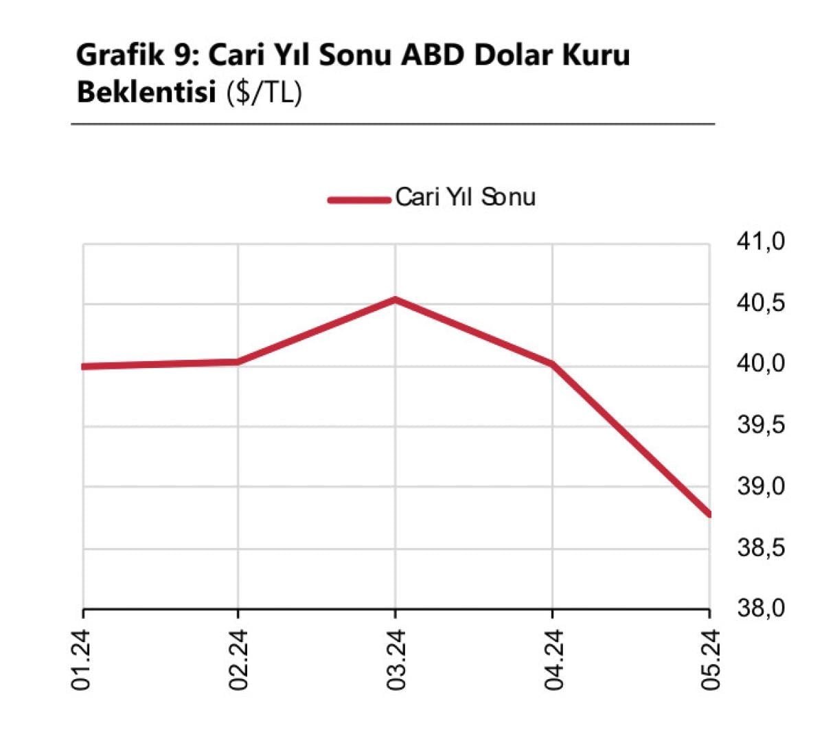 Katılımcıların cari yıl sonu ABD doları/TL beklentisi, bir önceki anket döneminde 40,01 TL iken, bu anket döneminde 38,78 TL oldu.