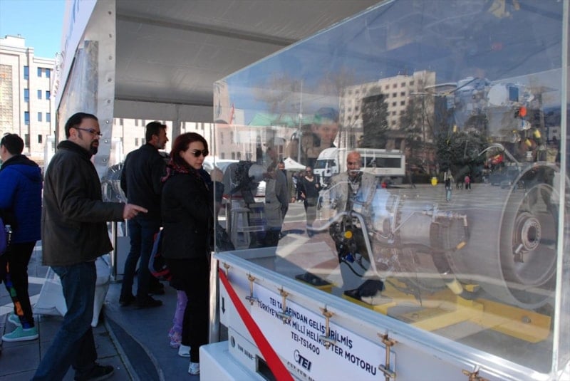 TEI tarafından üretilen Türkiye'nin ilk milli turbofan uçak motoru TEI-TF6000, art yakıcı modülle 10 bin libre itki üretecek TEI-TF10000, Türkiye'nin ilk özgün helikopteri GÖKBEY'e güç veren TEI-TS1400, genel maksat helikopterlerine güç veren T700-TEI-701D turboşaft motoru, ANKA, AKSUNGUR ve BAYRAKTAR TB3'e güç veren Türkiye'nin milli turbodizel havacılık motoru TEI-PD170'in izlenime sunulduğu sergiye vatandaşların ilgisi sürüyor.
