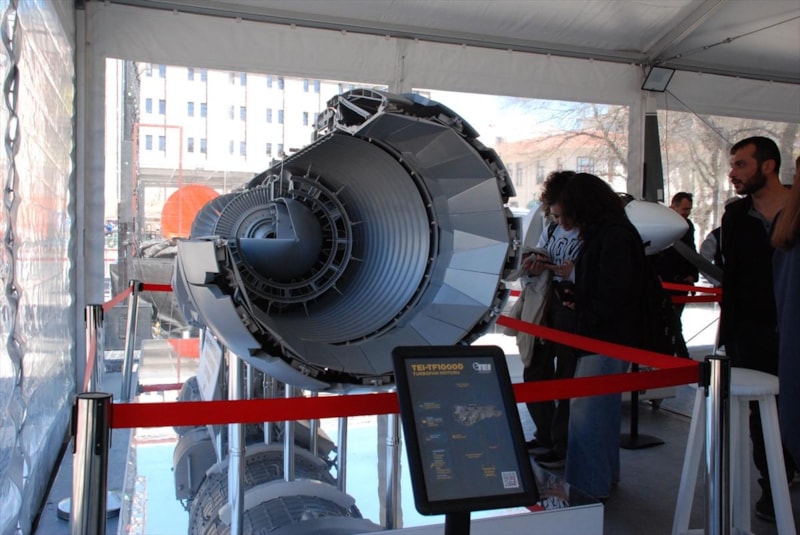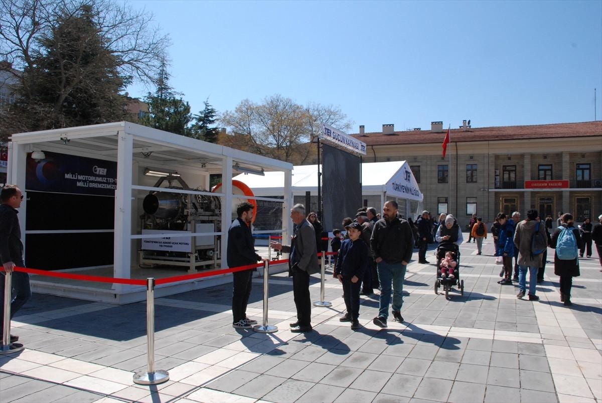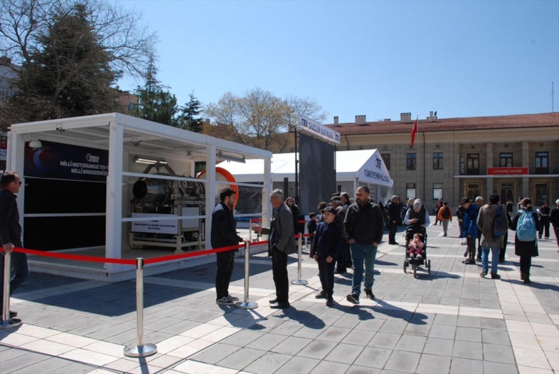 Eskişehir'de kurulu TUSAŞ Motor Sanayi AŞ (TEI) tarafından üretilen milli havacılık motorları, Vilayet Meydanı'nda sergileniyor.