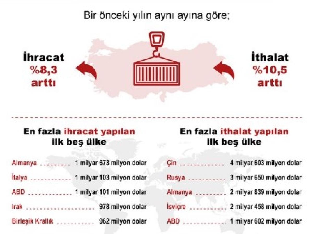 Temmuz ayında dış ticaret açığı bir önceki yılın aynı ayına göre yüzde 14,2 artarak 10 milyar 702 milyon dolardan, 12 milyar 217 milyon dolara yükseldi. İhracatın ithalatı karşılama oranı 2022 Temmuz ayında yüzde 63,4 iken, 2023 Temmuz ayında yüzde 62,2'ye geriledi.