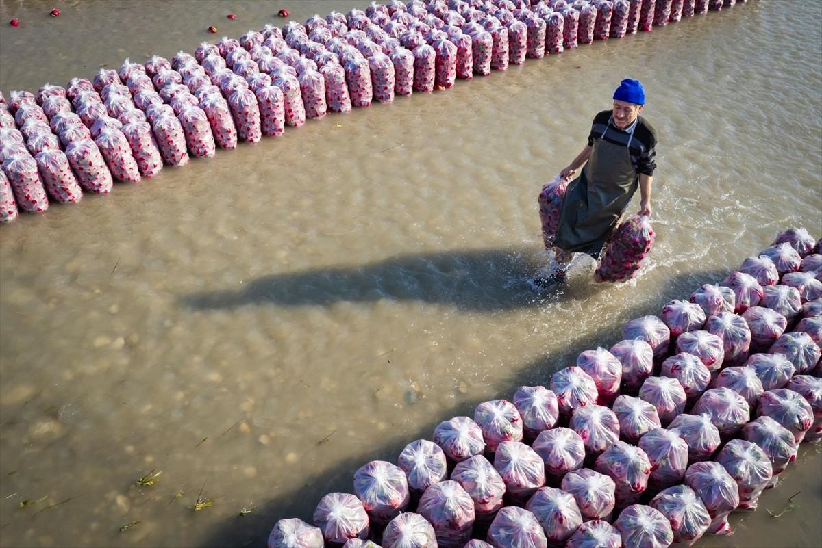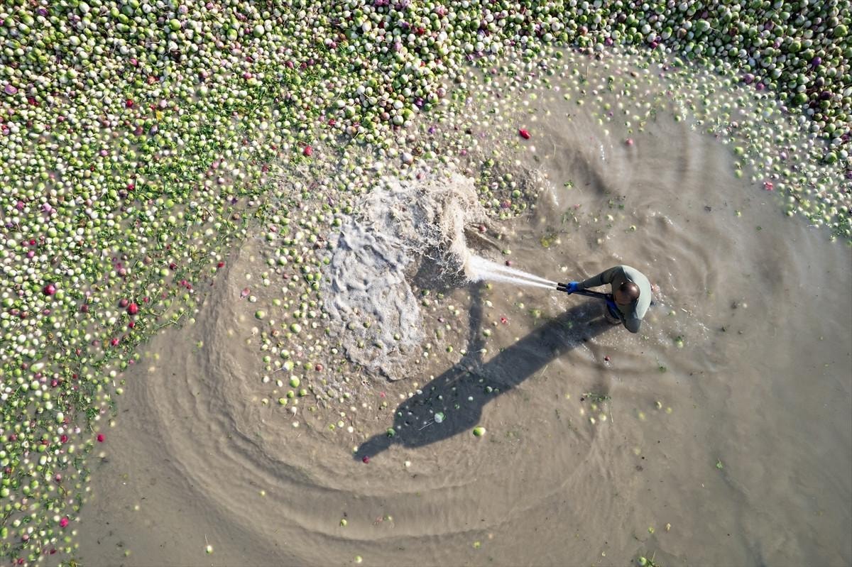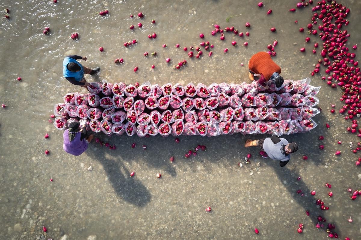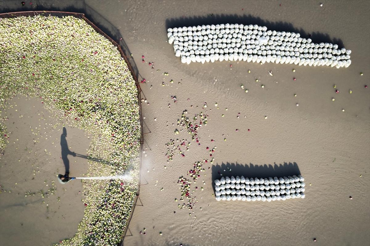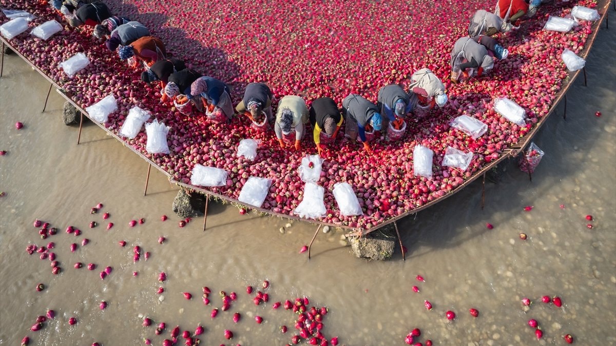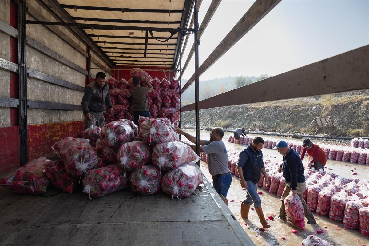 Kış aylarına girilmesiyle başlayan hasat döneminde işçiler, sabahın erken saatlerinde Savrun Çayı'na gelerek turpları yıkayıp paketliyor.
