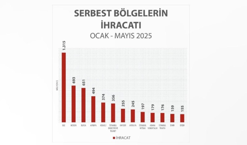 Bu rakam, serbest bölgeler tarihindeki en yüksek mayıs ayı ihracat değeri olarak kayıtlara geçti.