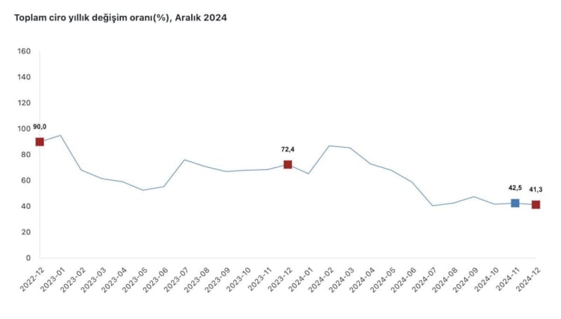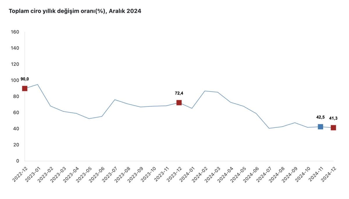 TOPLAM CİRO ENDEKSİ ARALIK 2024'TE YILLIK BAZDA YÜZDE 41,3 ARTTI