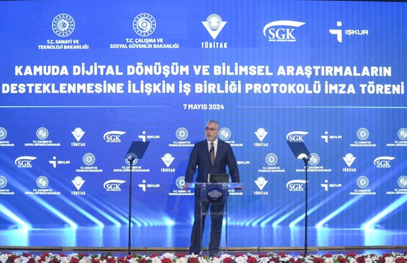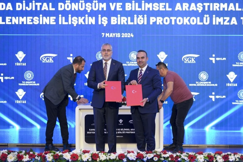 "Kamuda Dijital Dönüşüm ve Bilimsel Araştırmaların Desteklenmesine İlişkin İş Birliği Protokolü" Sanayi ve Teknoloji Bakanı Mehmet Fatih Kacır ve Çalışma ve Sosyal Güvenlik Bakanı Vedat Işıkhan'ın da katıldığı törenle imzalandı.
