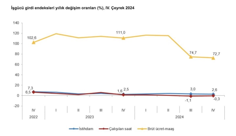 Türkiye İstatistik Kurumu (TÜİK), Ekim-Aralık 2024 dönemine ilişkin iş gücü girdi endeksleri açıkladı.