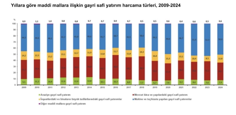 MADDİ MALLARA İLİŞKİN GAYRİSAFİ YATIRIM HARCAMALARININ YÜZDE 50'Sİ 2024 YILI İÇİNDE MAKİNE VE TEÇHİZATA YAPILDI