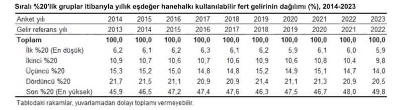 Türkiye İstatistik Kurumu (TÜİK), Türkiye'nin 2023 yılı gelir dağılımı istatistiklerini aktardı.