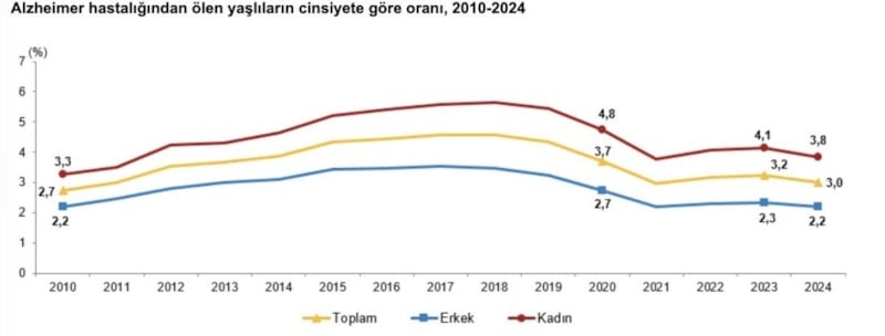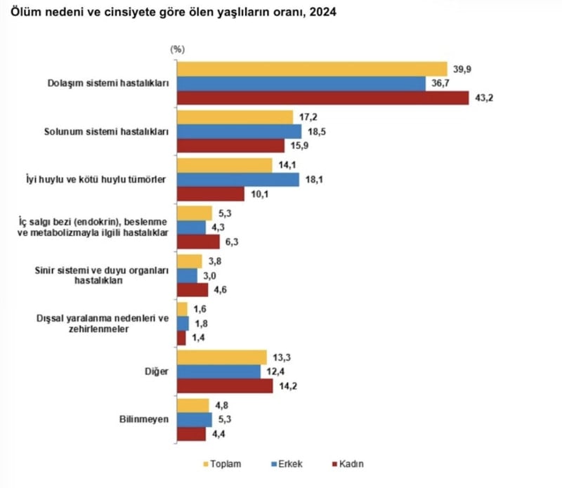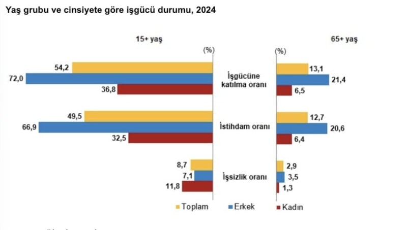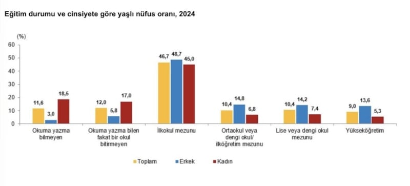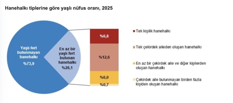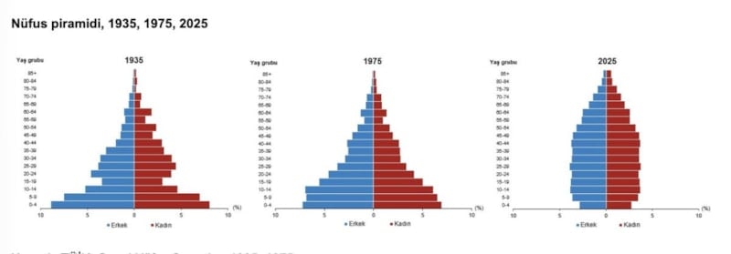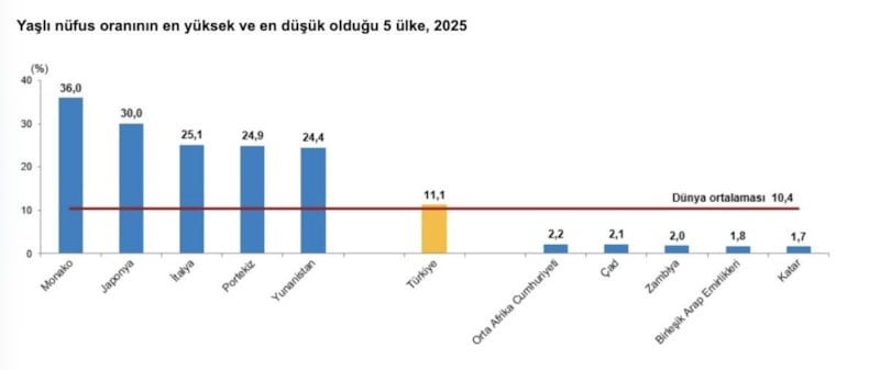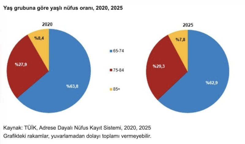Yaşlı nüfusun toplam nüfus içindeki oranı ise 2020 yılında yüzde 9,5 iken, 2025 yılında yüzde 11,1'e yükseldi.